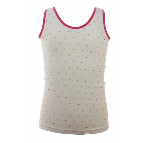 \\n 100% katoen, katoenen meisjes hemdje zonder zijnaden\\n\\n \\n bij de hals en de armsgaten met een elastisch boordje afgebiesd\\n \\n vanaf maat 140 heeft het hemdje elastische spaghetti bandjes\\n\\n\\n De kleur rose is uit de productie, dus nog maar beperkt leverbaar.\\n\\n \\n afm maat 104: lengte 44 cm / breedte 23 cm\\n \\n maat 116: lengte 47 cm / breedte 24 cm \\n\\n\\n \\n