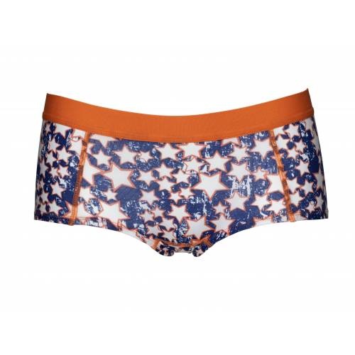 \\n 95% katoen 5%, elastan . elastisch katoenen Boobs&Bloomers hipster met 'Star' print met oranje-kleurige band\\n\\n \\n Mooie hipster waar een bijpassend BH’tje bij verkrijgbaar is.\\n \\n Maat XS = 152\\n \\n Maat S = 164/176\\n \\n Maat M = 34/36\\n \\n maat L = 36/38\\n\\n\\n \\n