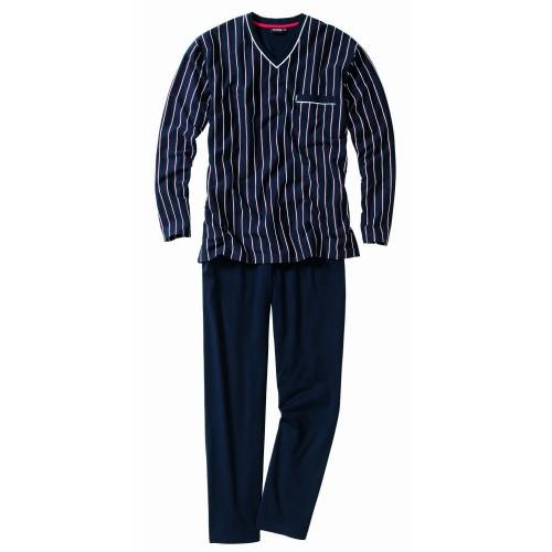 \\n 100% katoen, mooie kwaliteit tricot heren pyjama\\n\\n \\n - Ceceba heren pyjama met gestreept shirt en donkerblauw uni broek\\n\\n\\n afmetingen pyjama maat 60/62: shirt: breedte 70 cm / lengte 83 cm, omtrek broekband: 100-140 cm\\n\\n \\n
