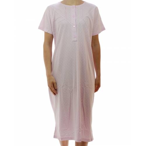 \\n 100% katoen, klassiek tricot nachthemd met korte mouw en ronde hals met korte knoopsluiting met 4 knoopjes\\n\\n afm maat M: breedte 56 cm / lengte nachthemd 110 cm \\n Maat L : breedte 59 cm\\n \\n met allover Circle/stippel dessin\\n\\n\\n