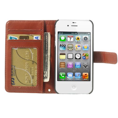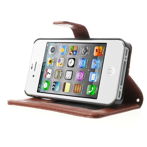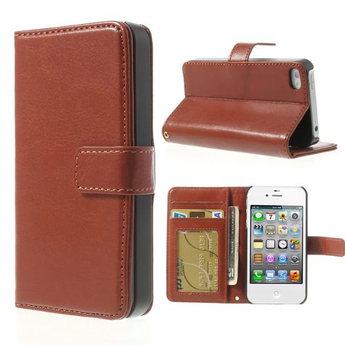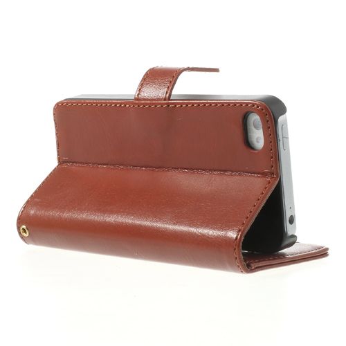 Voor de iPhone44SCrazy HorseStand LeatherkaarthouderTelefoonShell-BruinPU leeren kunststoffen, gekpaardtextuur