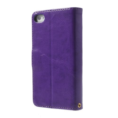Voor de iPhone 4 4S Crazy Horse Stand Leather kaarthouder Telefoon Shell - Paars