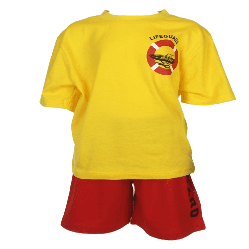 \\n 100% katoen, heel leuk tricot jongens shortama met Lifegard print.\\n\\n \\n geel shirt met ronde hals en korte mouwen\\n \\n uni rood broekje met LIfeguard tekstprint\\n\\n\\n \\n