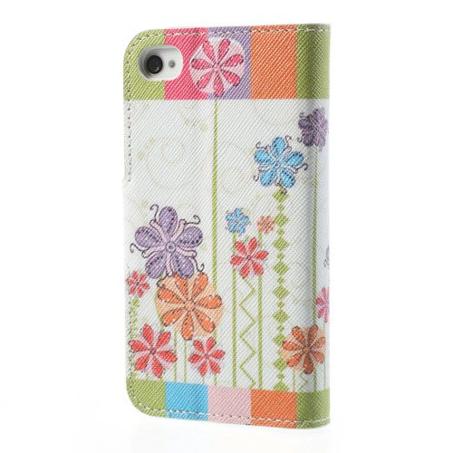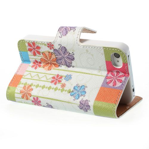 gekleurde strepen bloemen wallet leren hoesje voo