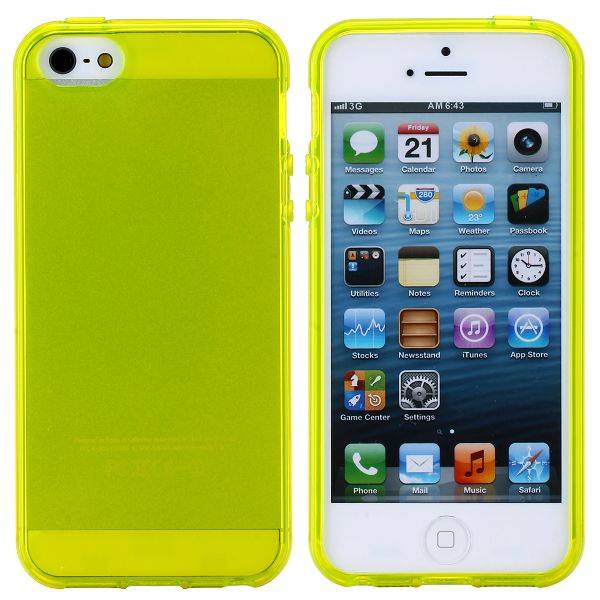 Geel transparante TPU case voor de iPhone 5, dankzij de flexibele eigenschap van TPU biedt het een goede bescherming tegen beschadigingen door stoten en vallen. De case is voorzien van alle benodigde uitsparingen voor knoppen, toegangspoorten en camera en heeft tevens een handige opstaande rand aan de voorzijde om schuifkrassen aan het touchscreen te voorkomen.Kenmerken TPU iPhone 5 case: