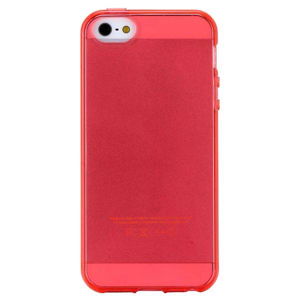 Rood transparante iPhone 5 TPU Case, voorzien van de benodigde uitsparingen voor knoppen camera en toegangspoorten. Geeft uw iPhone 5 een goede bescherming tegen beschadigingen en maakt deze amper dikker. Lees meer