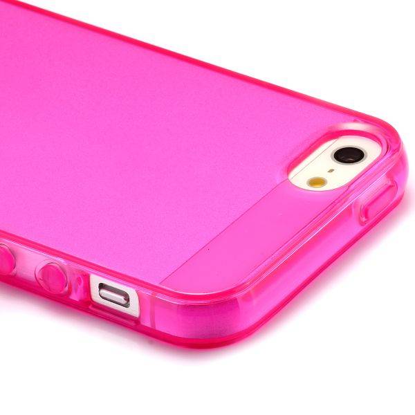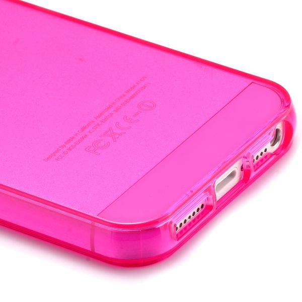 Roze transparante iPhone 5 TPU Case, voorzien van de benodigde uitsparingen voor knoppen camera en toegangspoorten. Geeft uw iPhone 5 een goede bescherming tegen beschadigingen en maakt deze amper dikker. Lees meer