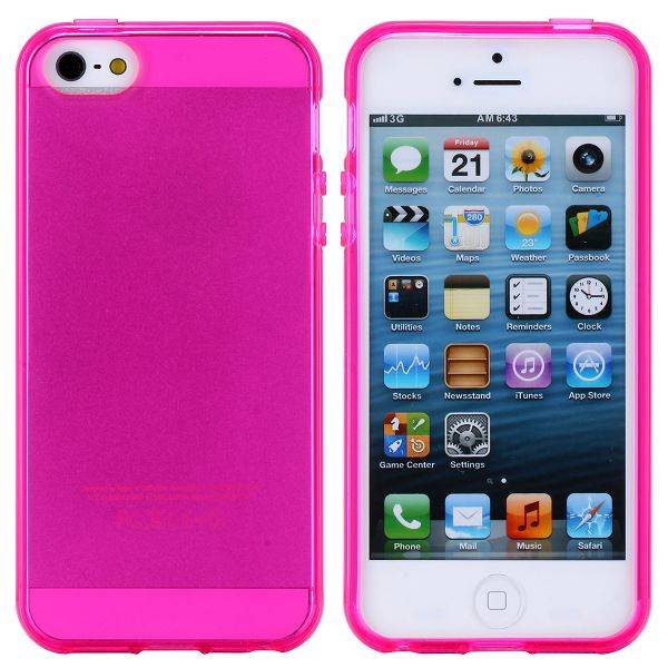 Roze transparante TPU case voor de iPhone 5, dankzij de flexibele eigenschap van TPU biedt het een goede bescherming tegen beschadigingen door stoten en vallen. De case is voorzien van alle benodigde uitsparingen voor knoppen, toegangspoorten en camera en heeft tevens een handige opstaande rand aan de voorzijde om schuifkrassen aan het touchscreen te voorkomen.Kenmerken TPU iPhone 5 case: