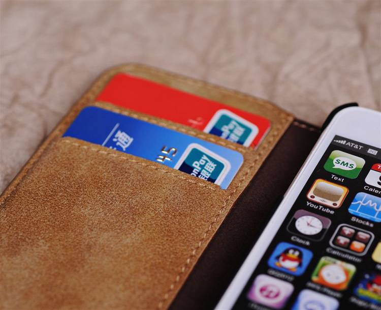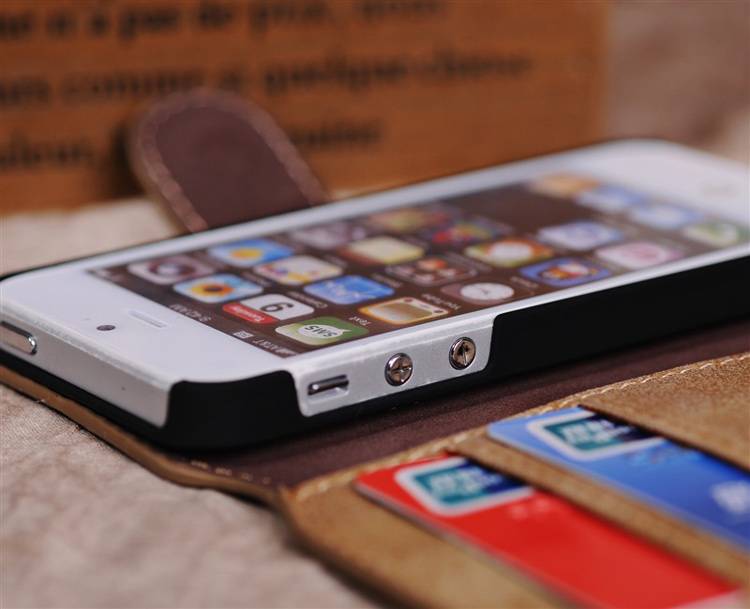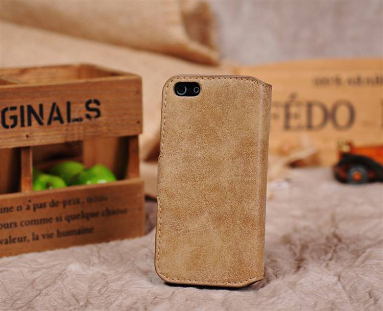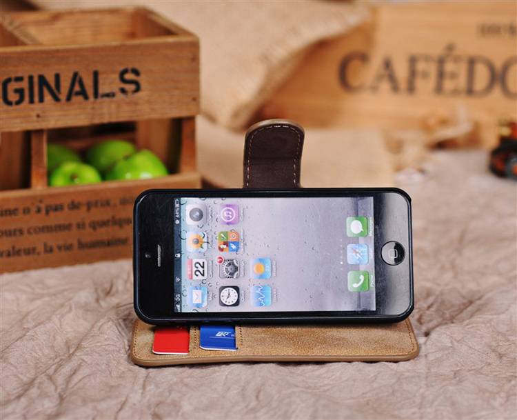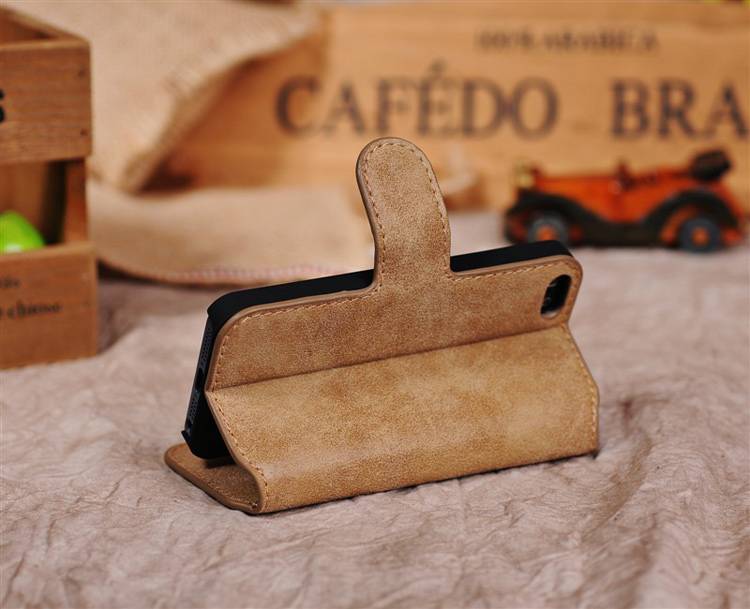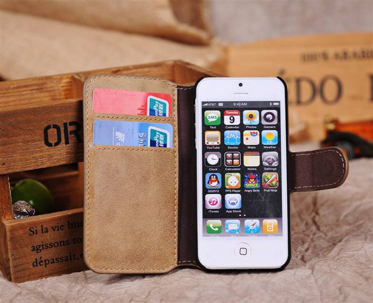 Wallet case van echt (split) leer voor de iPhone 5(s)/SE