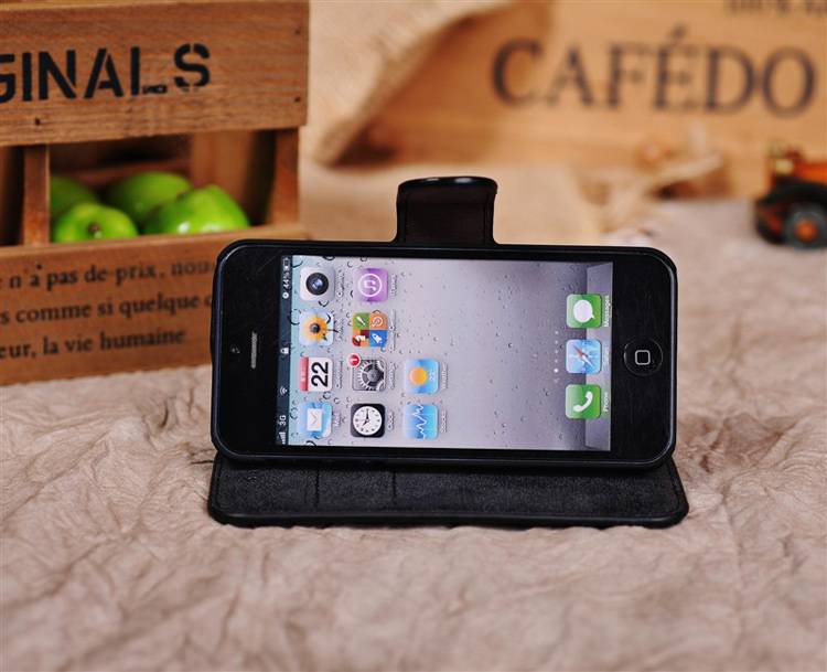 Wallet case van echt (split) leer voor de iPhone 5(s)