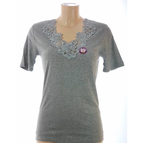 \\n 100% katoen, dames hemdje van een soepele katoen met korte mouw en mooie grote kantinzet rond de hals.\\n\\n \\n het hemdje heeft geen zijnaden en is aan onderzijden en bij de mouwen omgezoomd. \\n \\n maat 40/42 heeft een lengte van 67 cm en een breedte van 36 cm \\n\\n