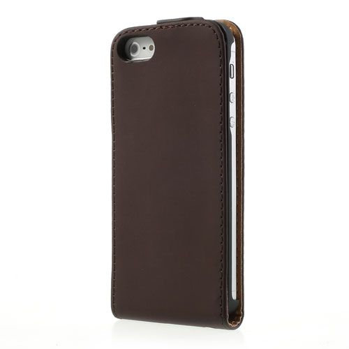 Klassieke Flip case voor iPhone 5 en iPhone 5S.Echt bruin leder