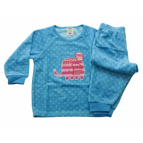 \\n 75% katoen 25% polyester, super mooie kwaliteit velourse baby / peuterpyjama met hele leuke 'Olifant' print\\n\\n \\n de stippelprint pyjama heeft een ronde hals met een smal elastisch boordje en stippel\\n \\n met elastisch katoenen boordjes aan de mouwen en aan de broek.\\n\\n