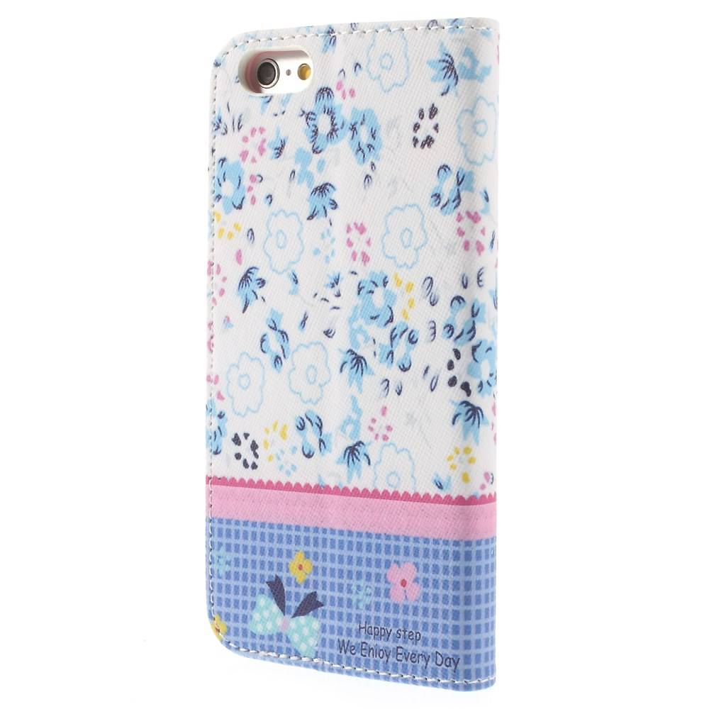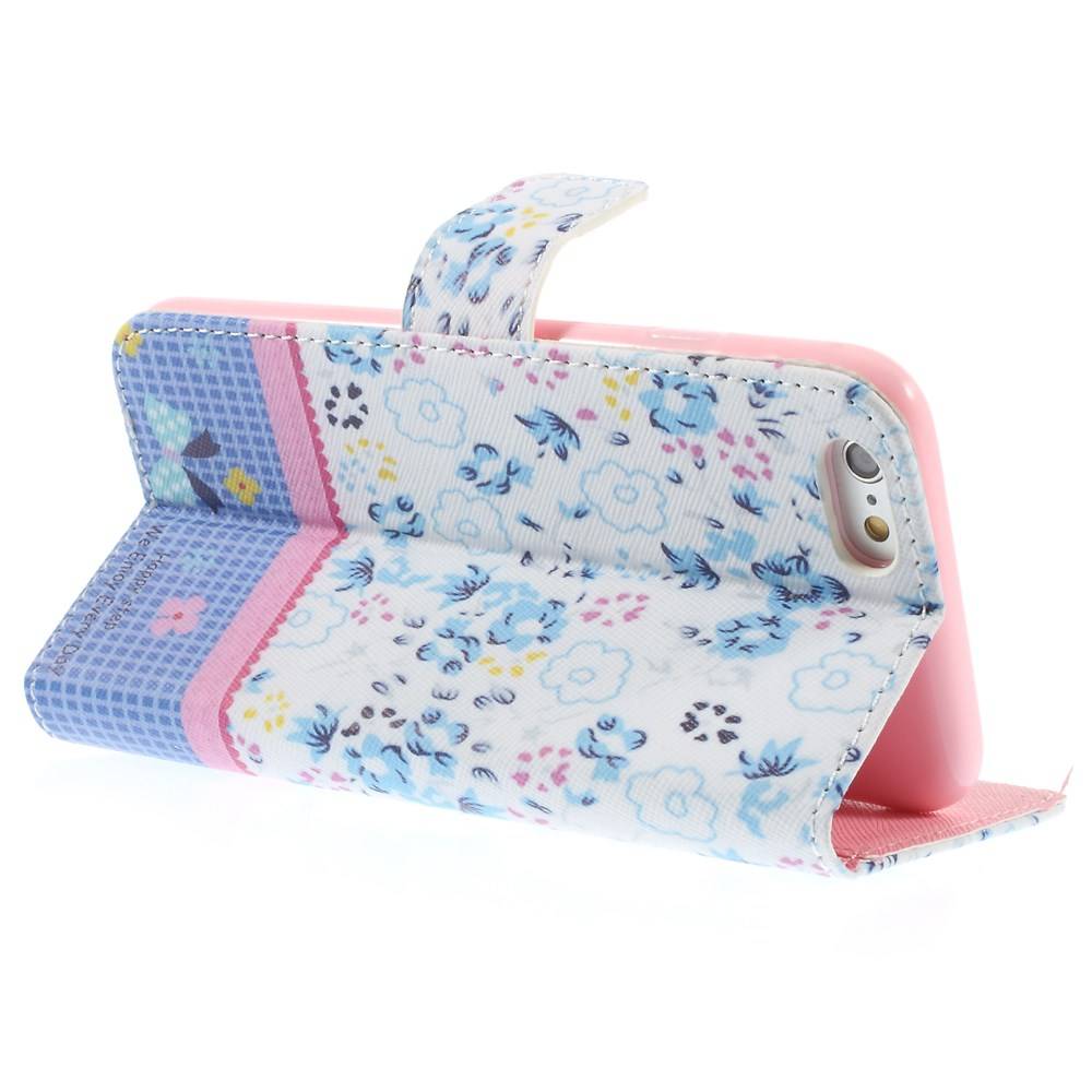 pu leren rhinestone wallet iphone 6 s blauwe bloemen