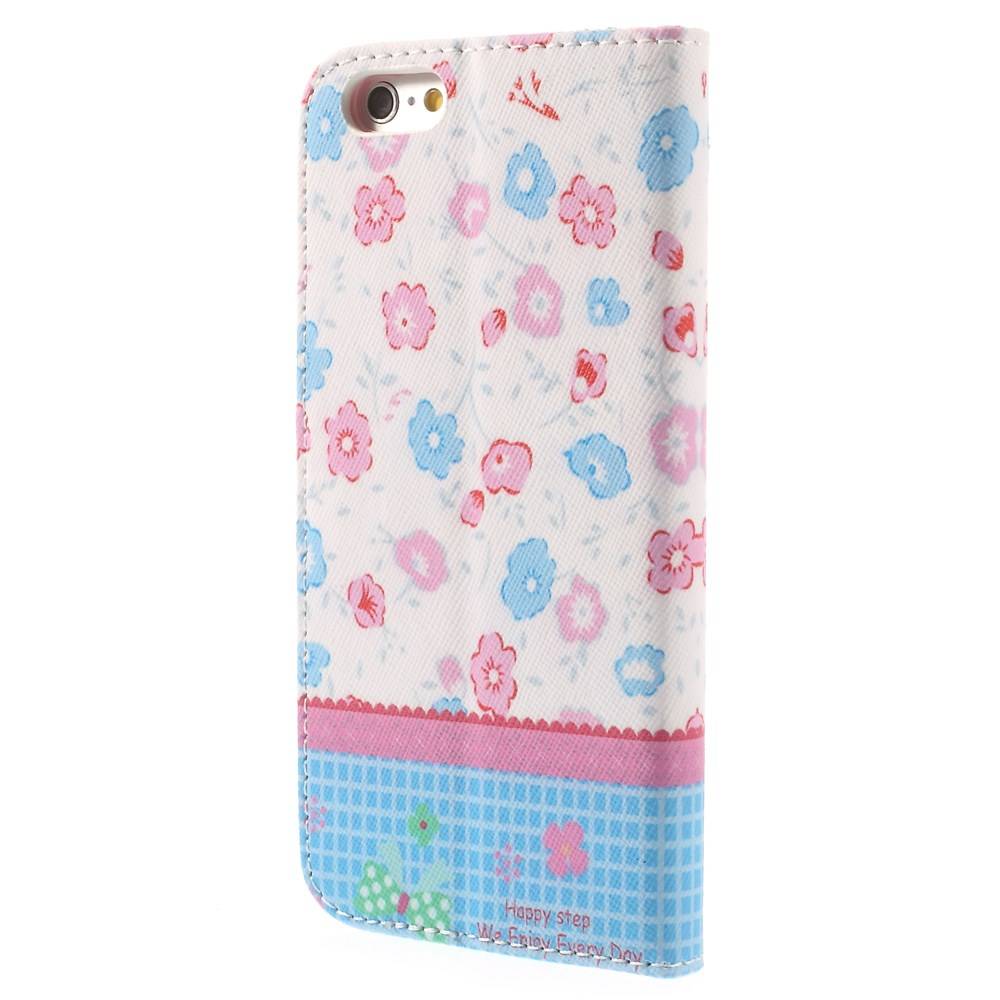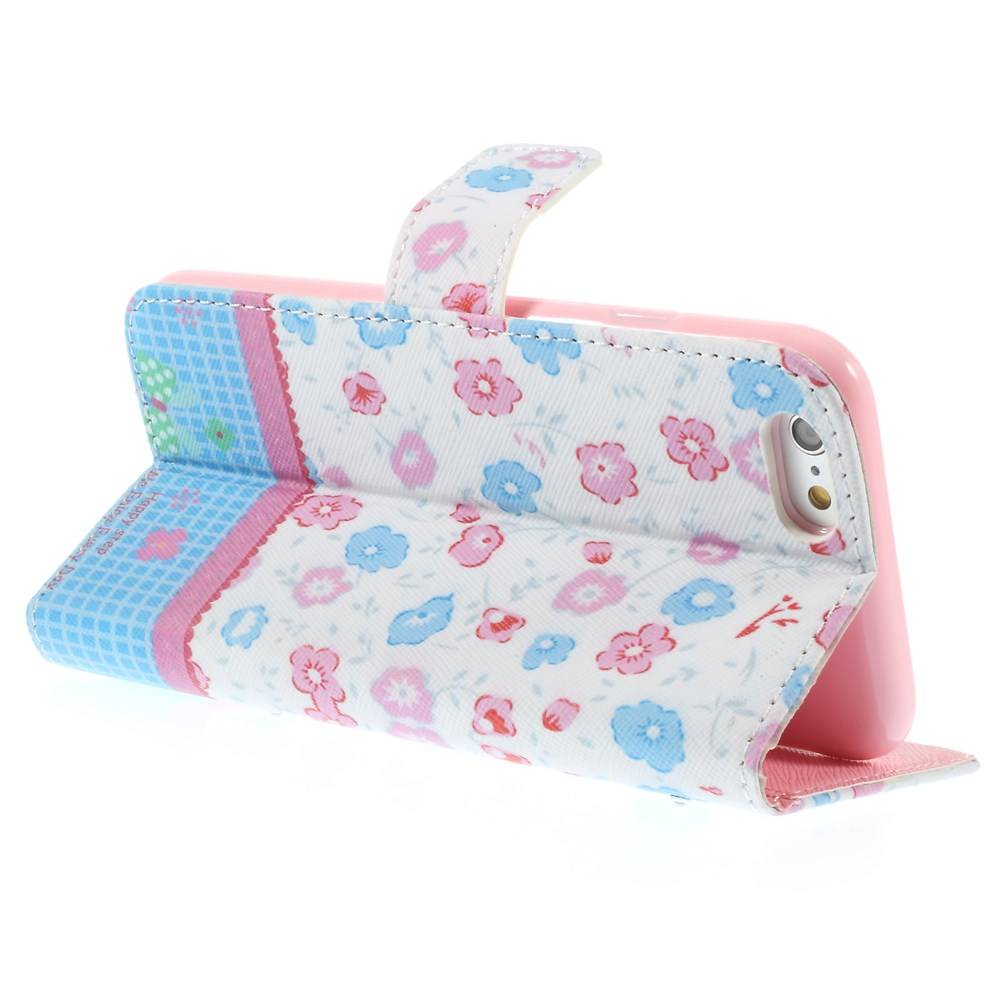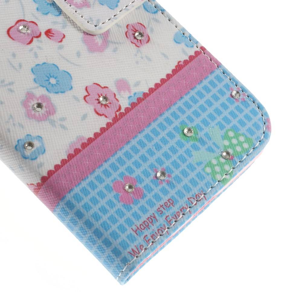 pu leren rhinestone wallet iphone 6 s roze blauwe bloemen