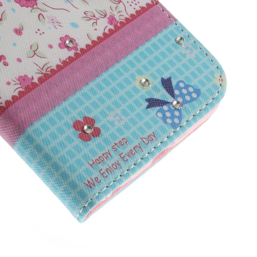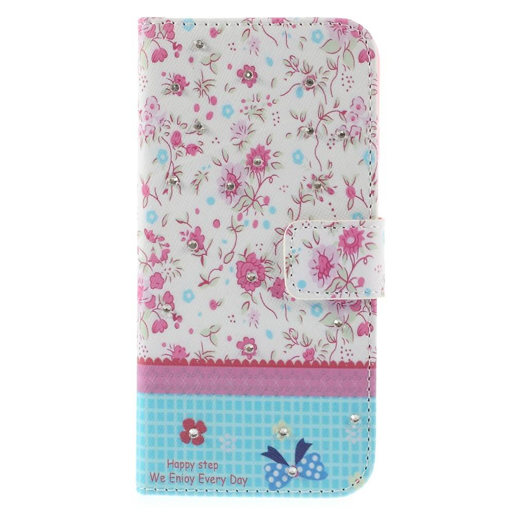 pu leren rhinestone wallet iphone 6 s roze bloemen