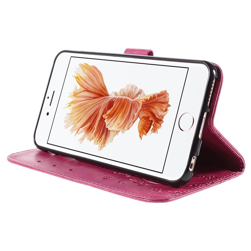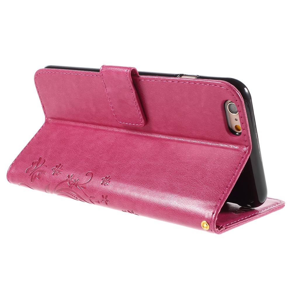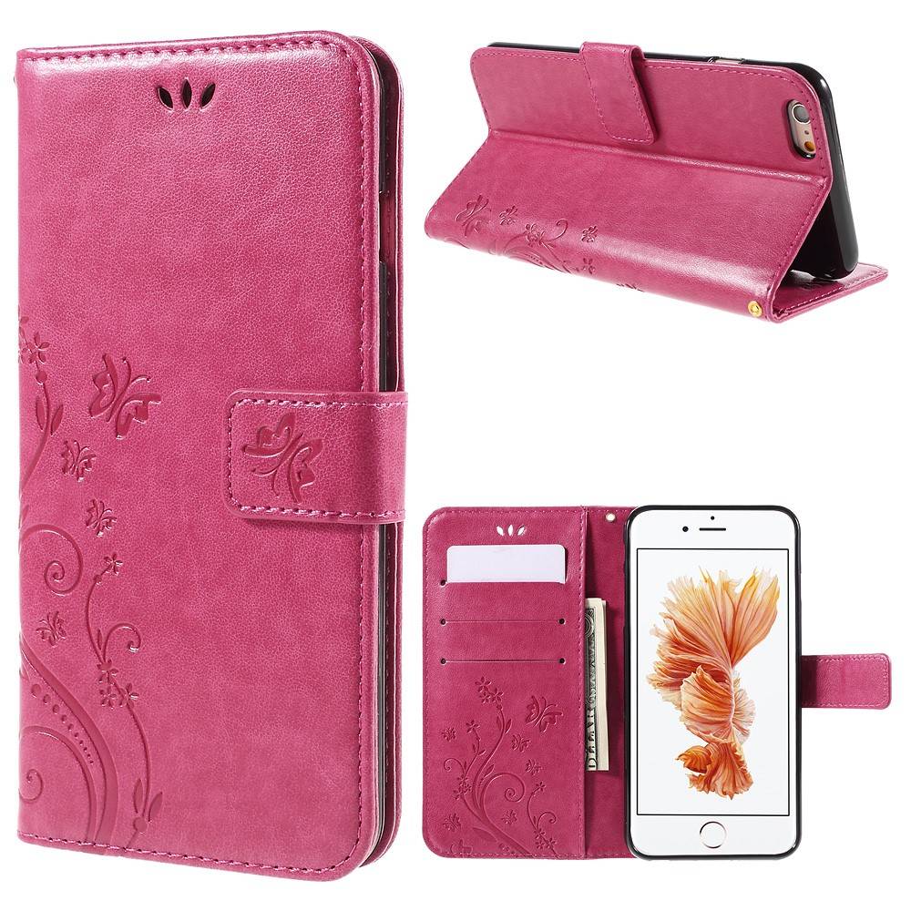 pu leren stand wallet hoesje voor iphone 6 s 4 7 inch roze vlinder en bloemprint
