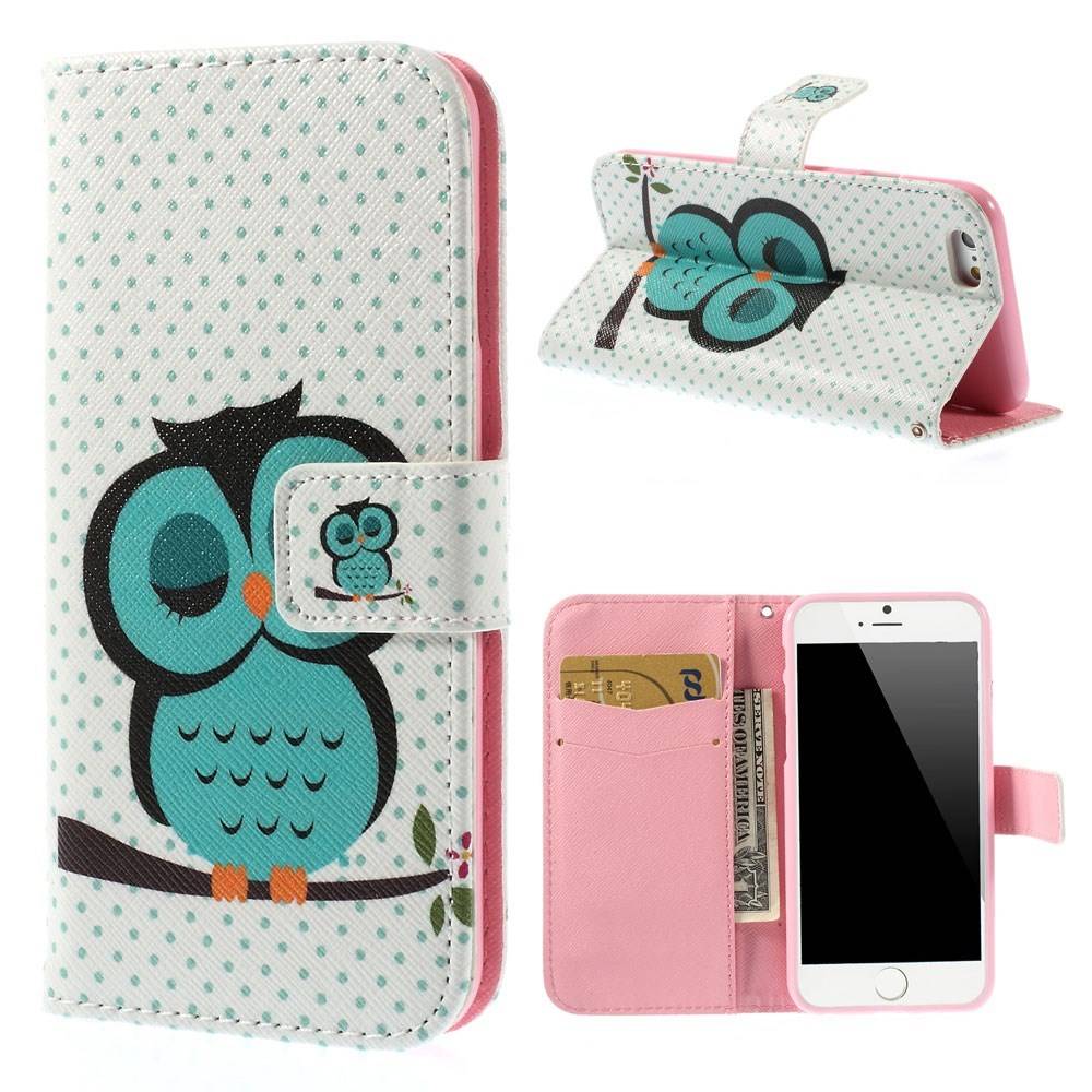 Wallet stand lederen hoesje voor iPhone 6(s) 4,7 inch, met Uil