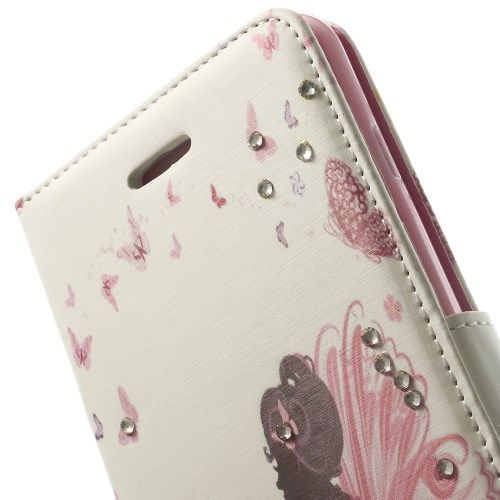 Pu leren wallet cover met rhinestones voor iPhone 6 5,5 inch - butterfly girl- Ingelegd met rhinestones