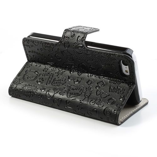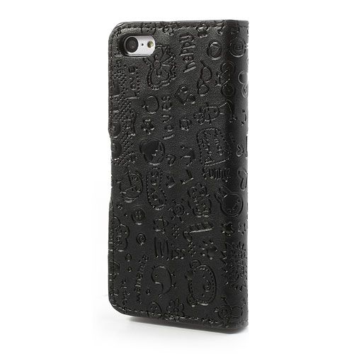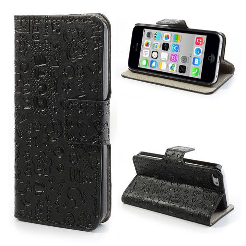 pu leren wallet iphone 5c cartoon graffiti zwart