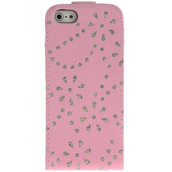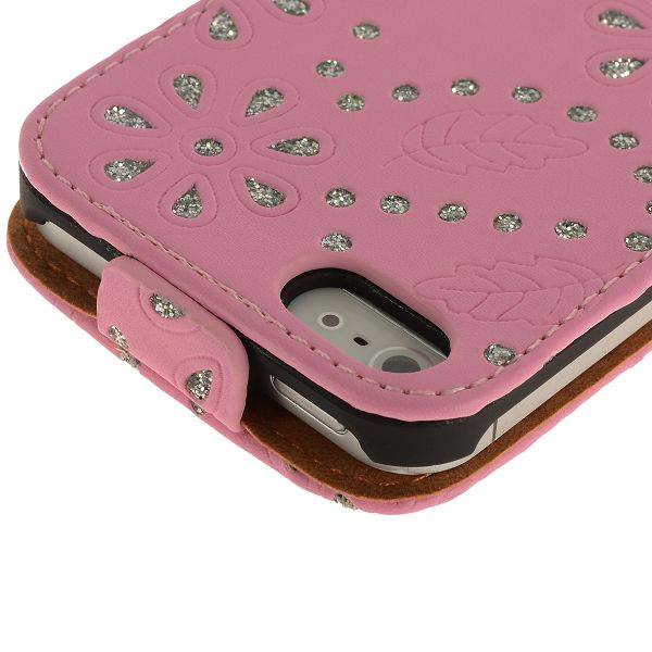 rhinestone flipcase iphone 5 roze
