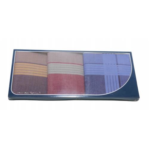 \\n 100% katoenen Swan heren zakdoek, hele mooie kwaliteit!\\n\\n \\n zakdoek met donkere ondergrond in weefruitmotief en met gekleurde streep rondom\\n \\n Goede kwalieit zakdoeken die met een smal zoompje rondom is afgewerkt\\n \\n In een doosje van 3 stuks zitten de kleuren blauw, bruin en rood\\n\\n