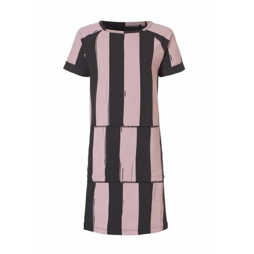 94% katoen 6% Elasthan, leuk tricot tiener nachthemd\\n\\n \\n Het nachthemd heeft een ronde hals en korte mouwtjes\\n met horizontale antracite/ rose brede strepenmet voorkant brede steekzakkenonderzijde loopt iets rond\\n\\n\\n \\n