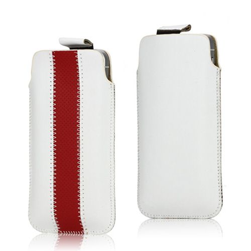 Wit/Rood lederen iPhone 5/5S insteek hoesje, met handig trek koord waarmee je de iPhone makkelijk en snel uit het hoesje lift. De binnenvoering is afgewerkt van zacht materiaal wat extra bescherming biedt tegen vallen en stoten. Lees meer
